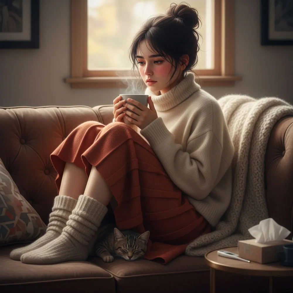 風邪のように冷えが身体に入ったせいで、ゾクゾクする寒気や熱っぽさ、頭の痛みがあり、汗は出ないのが特徴です。